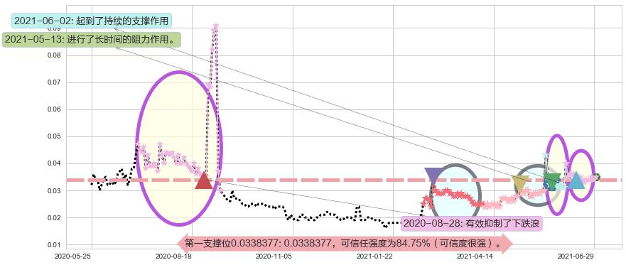 2021-05-13: 第一支撑位0.0338377进行了长时间的阻力作用。