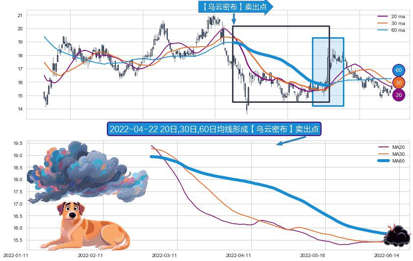 形态多维评估: ⚀ 2022-03-02日-2022-06-10日显现 20日-30日-60日均线 【乌云密布】卖出点 看空信号,后市看跌,卖出