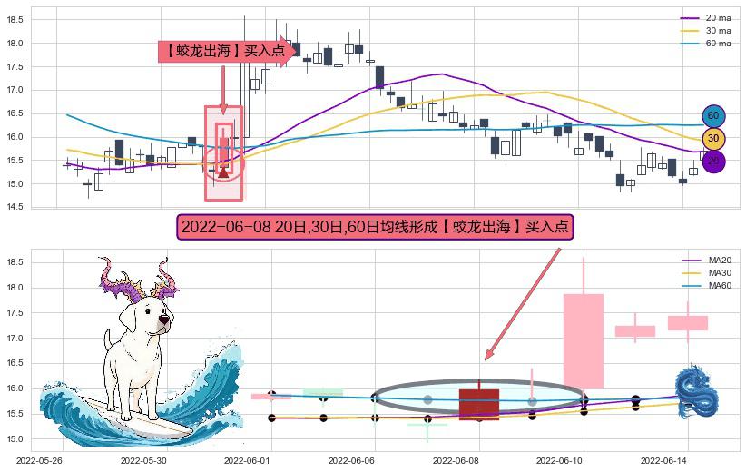 形态多维评估: ⚀ 2022-06-08日显现 20日-30日-60日均线 【蛟龙出海】买入点 看多信号,后市看涨,买入