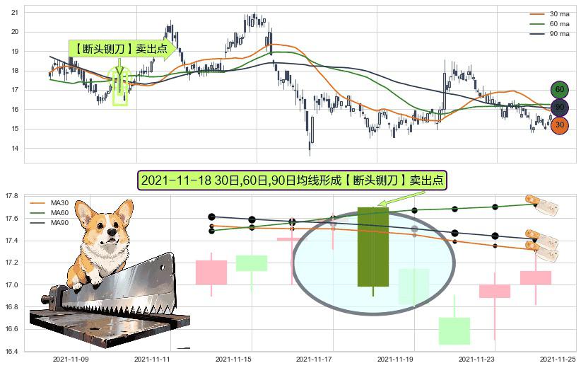形态多维评估: ⚀ 2021-11-18日显现 30日-60日-90日均线 【断头铡刀】卖出点 看空信号,后市看跌,卖出