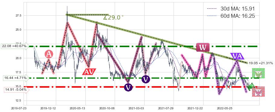 ♘ 支撑价格位14.91,可信任强度94.07%,距离最后交易2022-08-12形成的收盘价格15.70相差 -5.04%