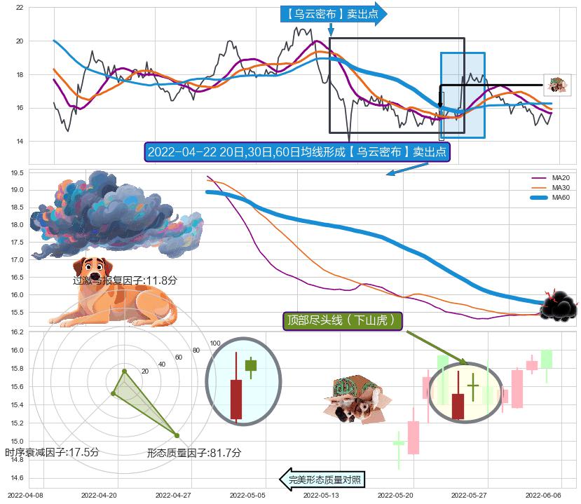 | 2 🅚:看跌(高位倒锤头)流星线 ➕ 🎢:【乌云密布】卖出点均线组合卖出点信号形成后,猜想后续下行持续,下跌加速(趋势跟踪) ☞ 看空信号 ⇥ 【均线】交织【🅚线】⇥ 综合量化分数: 45 | > |