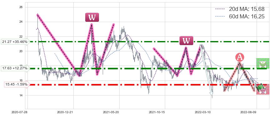 ♘ 阻力价格位17.63,可信任强度88.22%,距离最后交易2022-08-12形成的收盘价格15.70相差 +12.27%