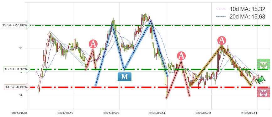 ♘ 阻力价格位19.94,可信任强度64.38%,距离最后交易2022-08-12形成的收盘价格15.70相差 +27.00%
