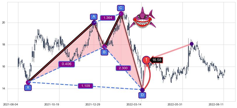 ➣ 已完成【鲨鱼】形态起点X: 2021-08-20, 终点D: 2022-03-15, 共140交易日