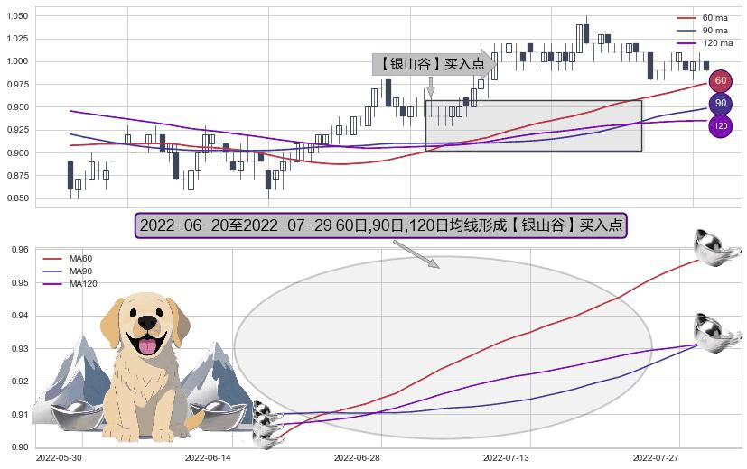 ⚀ 2022-06-21-日至2022-07-29-日显现 60日-90日-120日均线 【银山谷】买入点 看多信号,后市看涨,买入