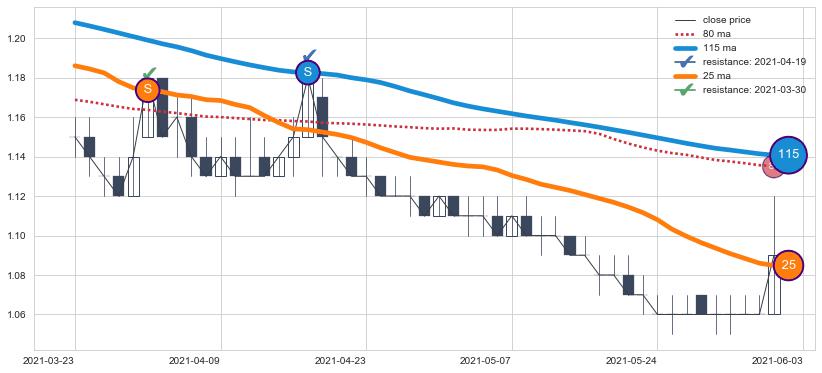 ➣ 历史趋势中共发现15处重要支撑阻力位,其中关键支撑位4处, 关键阻力位11处