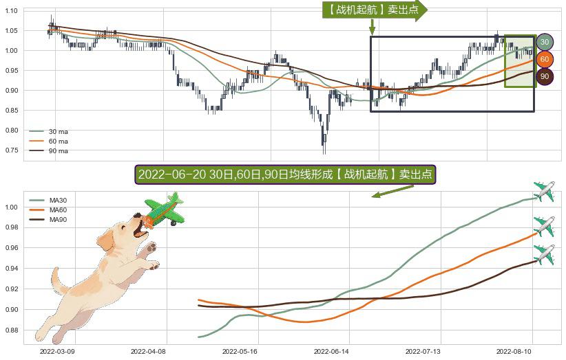 ⚀ 2022-04-25日-2022-08-11日显现 30日-60日-90日均线 【战机起航】卖出点 看空信号,后市看跌,卖出