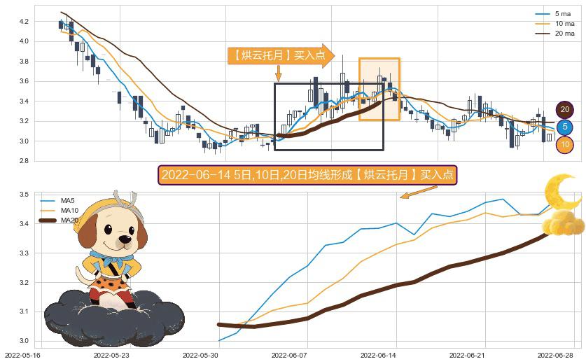 形态多维评估: ⚀ 2022-05-30日-2022-06-27日显现 5日-10日-20日均线 【烘云托月】买入点 看多信号,后市看涨,买入