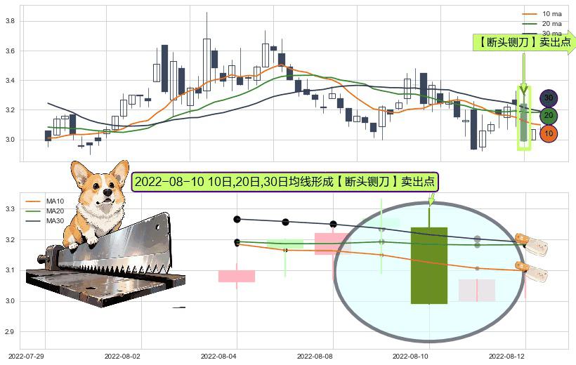 形态多维评估: ⚀ 2022-08-10日显现 10日-20日-30日均线 【断头铡刀】卖出点 看空信号,后市看跌,卖出