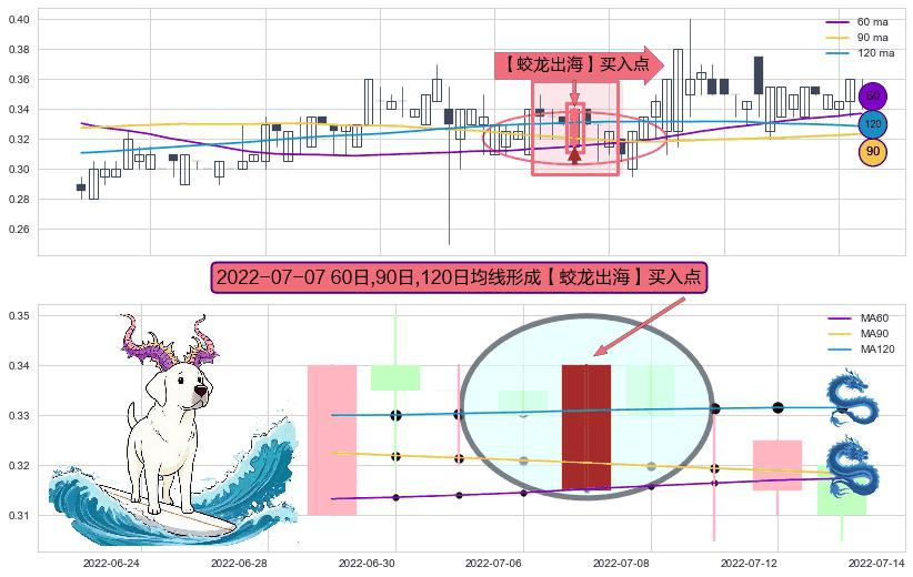 ⚀ 2022-07-07日显现 60日-90日-120日均线 【蛟龙出海】买入点 看多信号,后市看涨,买入