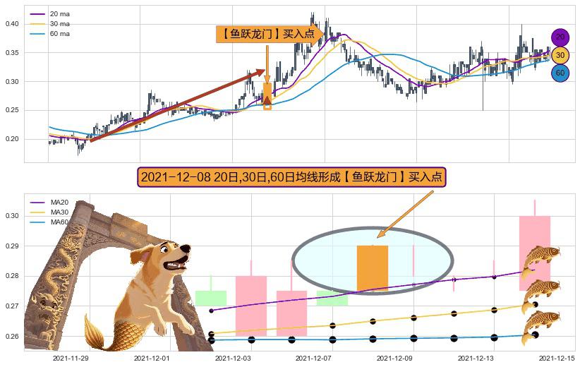 ⚀ 2021-12-08日显现 20日-30日-60日均线 【鱼跃龙门】买入点 看多信号,后市看涨,买入