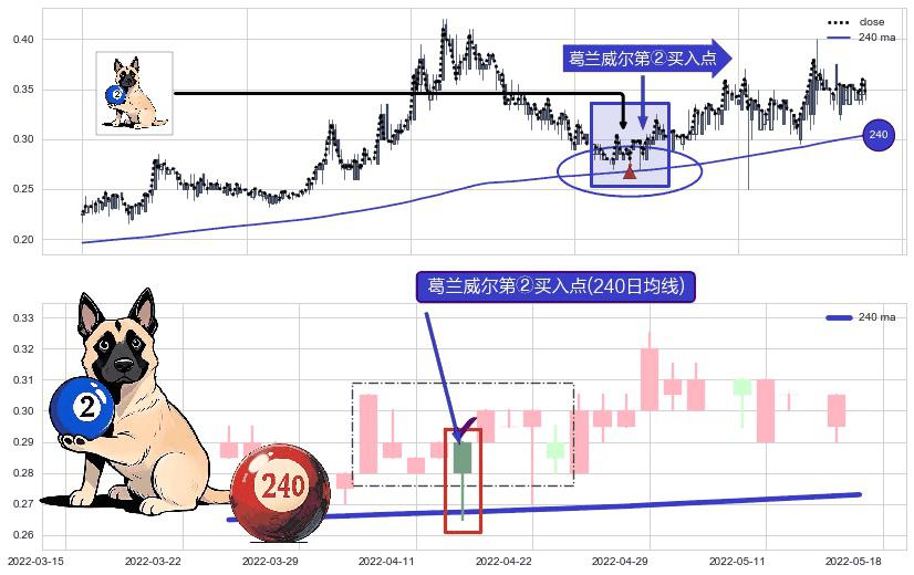 ⚀ 2022-04-19-日显现 葛兰威尔均线 240日均线 第②买入点 上升趋势的中继信号,后市看涨,买进信号