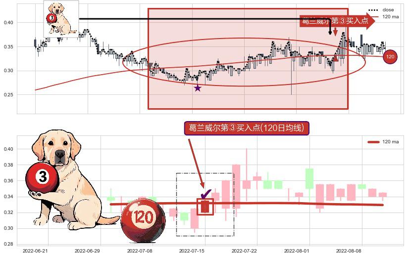 ⚀ 2022-07-15-日显现 葛兰威尔均线 120日均线 第③买入点 上升趋势的中继信号,后市看涨,买进信号