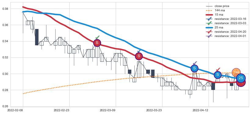 ⚂ 2022-03-14-日均线向下破位,2022-07-15-日重新上穿突破均线,均线支撑再次生效