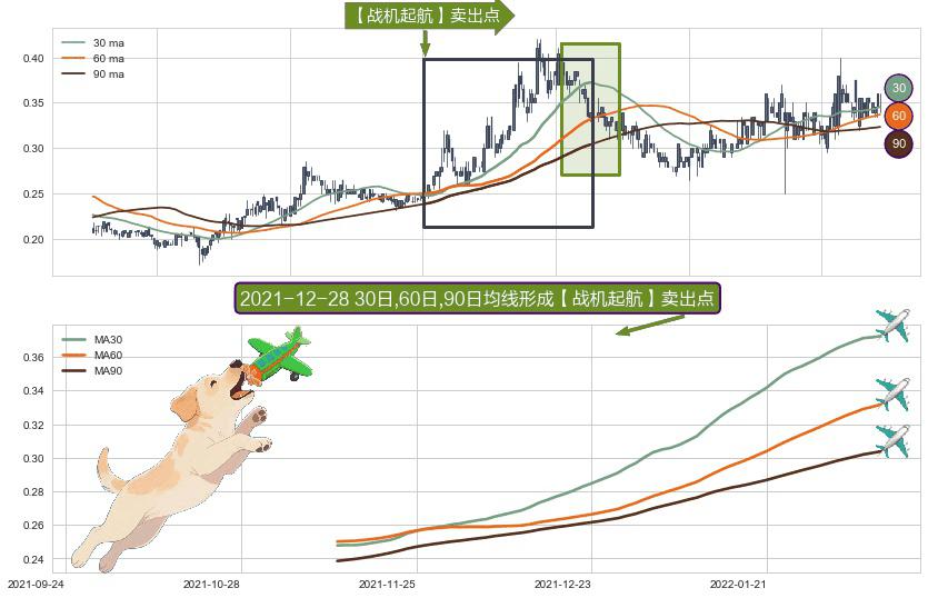 ⚀ 2021-11-12日-2022-02-14日显现 30日-60日-90日均线 【战机起航】卖出点 看空信号,后市看跌,卖出