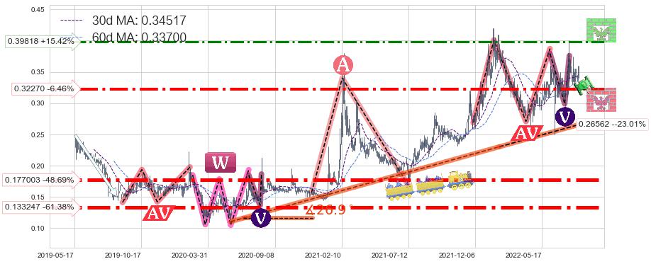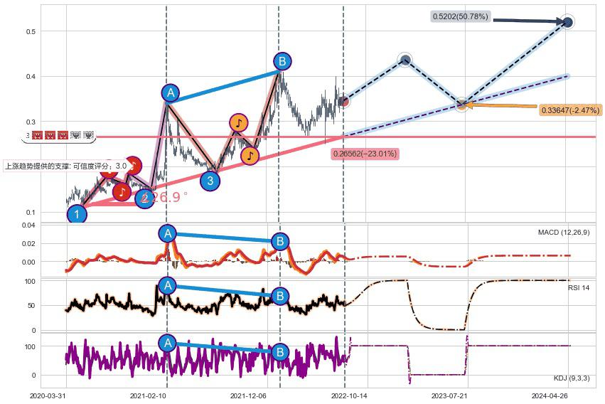 ➣ 预测:2023-07-12,【小幅回撤】稳定目前上涨趋势的前提下,预测价格:0.33647