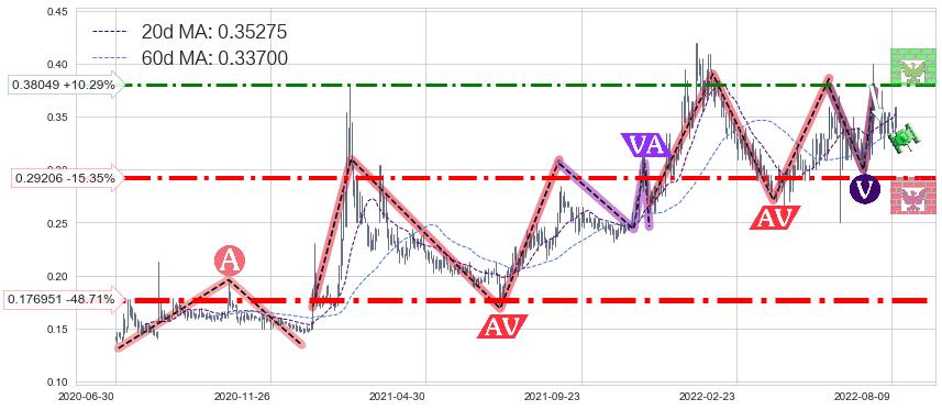 ♘ 阻力价格位0.38049,可信任强度56.16%,距离最后交易2022-08-12形成的收盘价格0.34500相差 +10.29%
