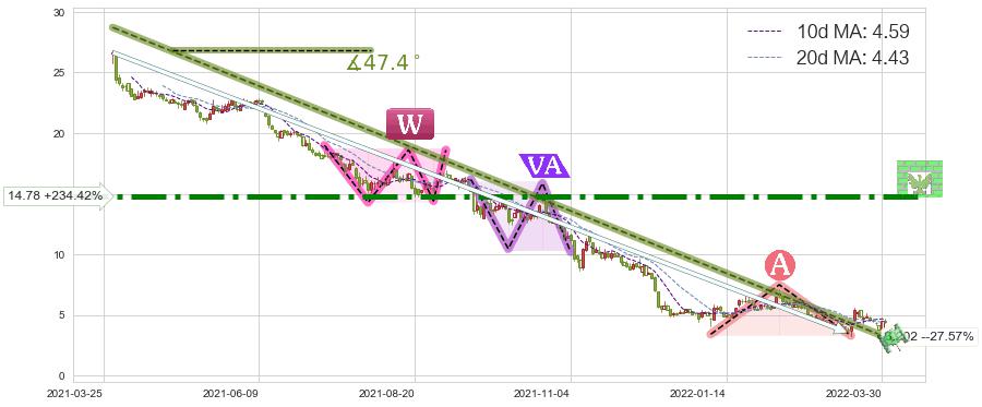 ♘ 阻力价格位14.78,可信任强度95.92%,距离最后交易2022-03-31形成的收盘价格4.42相差 +234.42%