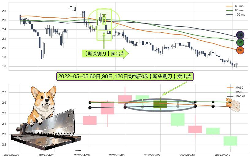 形态多维评估: ⚀ 2022-05-05日显现 60日-90日-120日均线 【断头铡刀】卖出点 看空信号,后市看跌,卖出