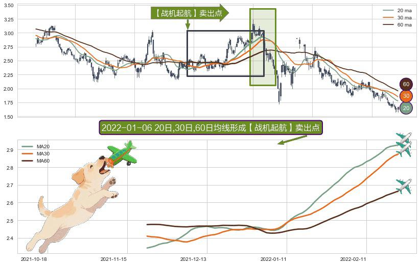 形态多维评估: ⚀ 2021-11-22日-2022-02-23日显现 20日-30日-60日均线 【战机起航】卖出点 看空信号,后市看跌,卖出
