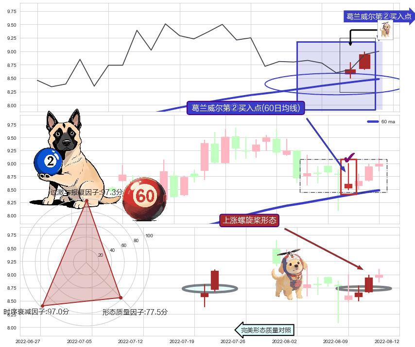 | 6 🅚:【蛟龙出海】买入点 ➕ 🌊:波浪理论下跌5浪小反弹:回调b点猜想c点将至持续小回调(大周期趋势均值回复中的小周期趋势跟踪) ☞ 看多信号 ⇥ 【均线】交织【图形】⇥ 综合量化分数: 63 | > |