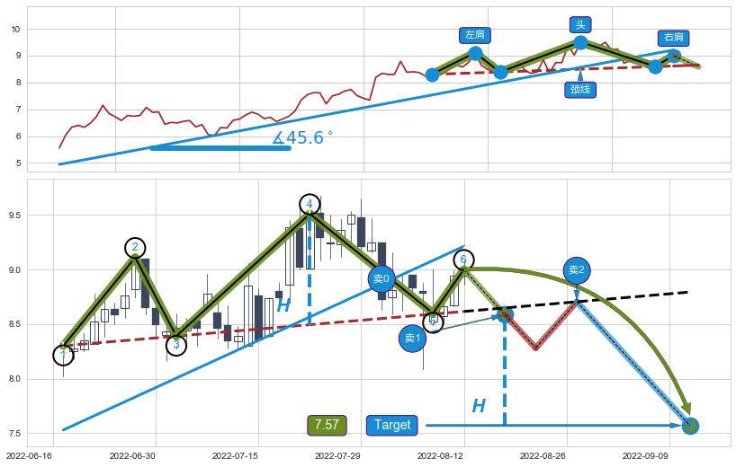 ➣ 【未确认突破,预测即将形成突破】头肩顶起点:2022-06-16, 预测突破点:2022-08-18,形态共45交易日
