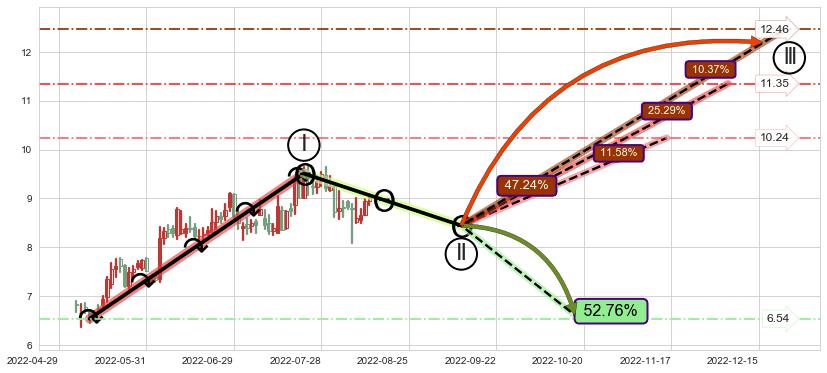 ➣ AI预测: 假定反转启动后, 第❶目标位置(2022-10-10, 8.37)