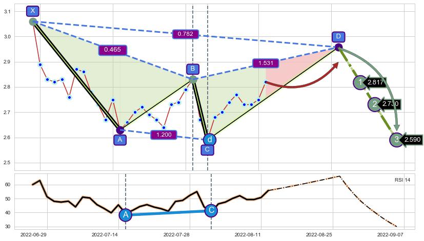 ➢ 谐波价格A点比C点高 ⤴,【RSI】指标A点比C点低 ⤵️