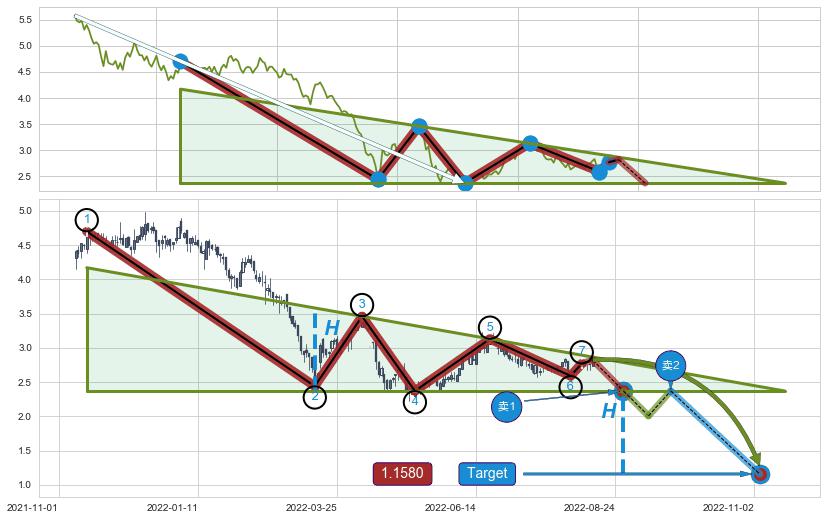 ➣ AI预测: 假定反转启动后, 第❶目标位置(2022-08-31, 2.817)