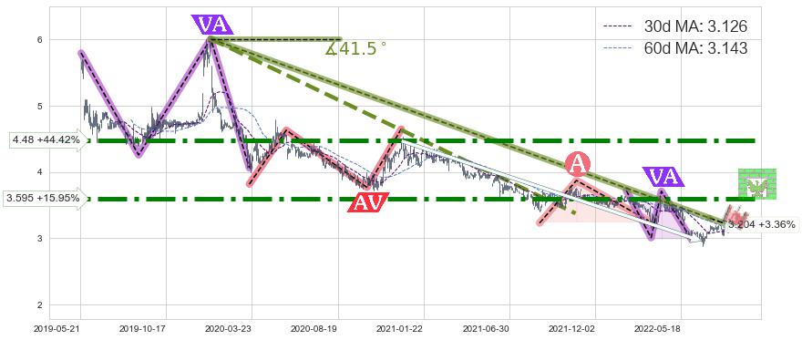 ♘ 阻力价格位3.595,可信任强度85.31%,距离最后交易2022-08-12形成的收盘价格3.100相差 +15.95%