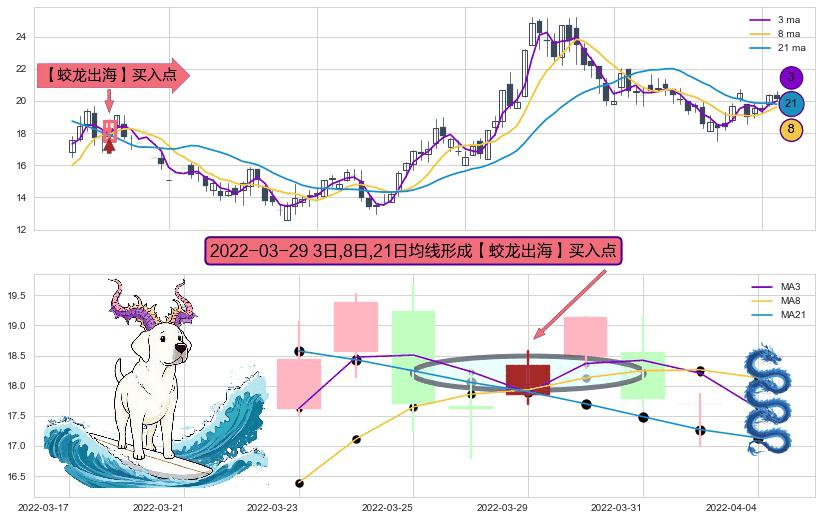 ⚀ 2022-03-29日显现 3日-8日-21日均线 【蛟龙出海】买入点 看多信号,后市看涨,买入