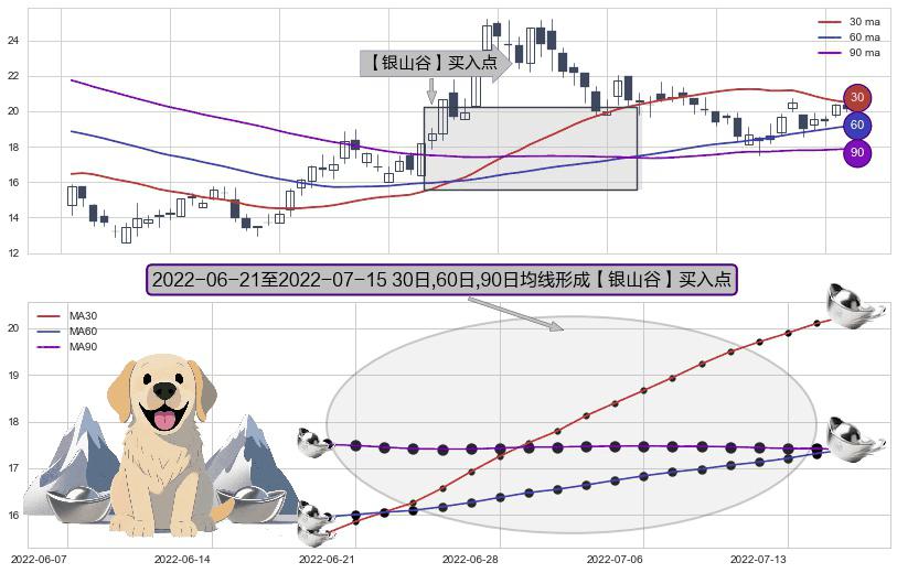 ⚀ 2022-06-22-日至2022-07-15-日显现 30日-60日-90日均线 【银山谷】买入点 看多信号,后市看涨,买入