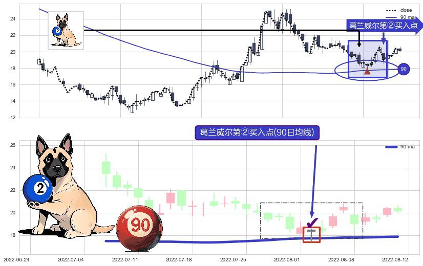 ⚀ 2022-08-02-日显现 葛兰威尔均线 90日均线 第②买入点 上升趋势的中继信号,后市看涨,买进信号