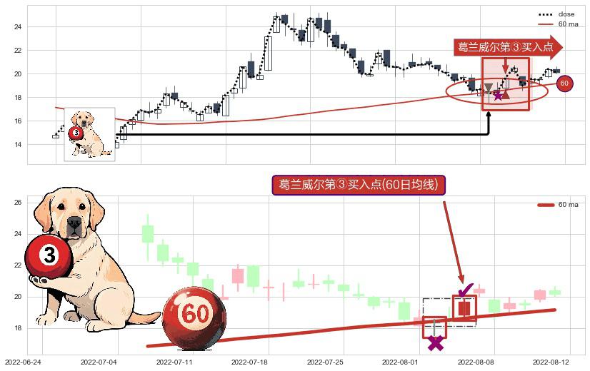 ⚀ 2022-08-04-日显现 葛兰威尔均线 60日均线 第③买入点 上升趋势的中继信号,后市看涨,买进信号