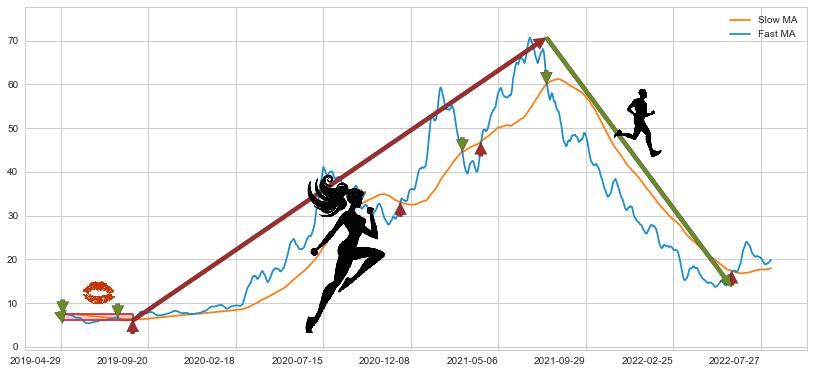 2021-07-27至2022-06-09 慢线与快线呈空头排列, 慢线与快线接触少,无缠绕
