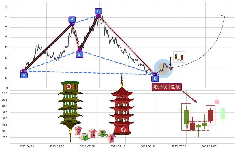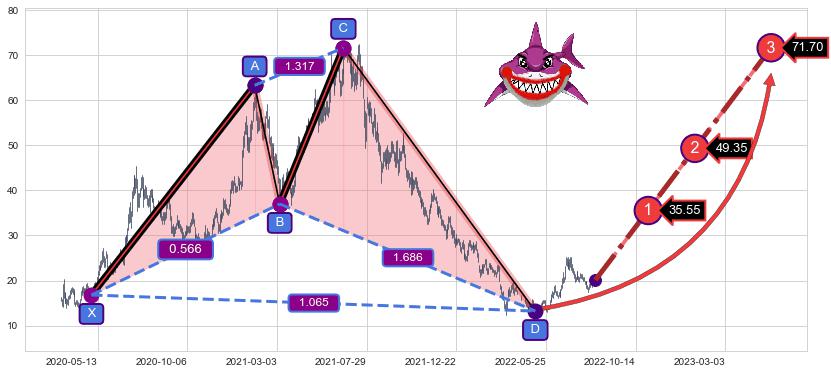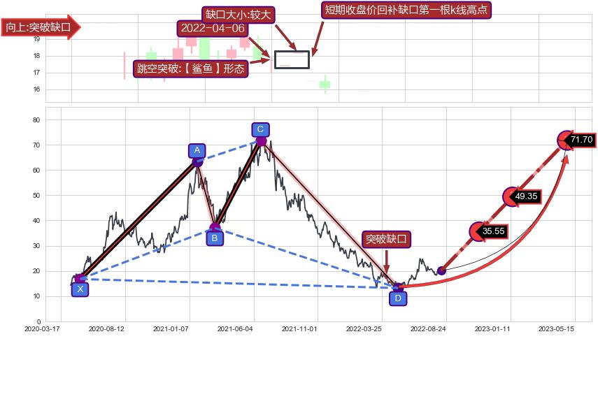 ➣ 已完成【鲨鱼】形态起点X: 2020-05-04, 终点D: 2022-05-06, 共496交易日