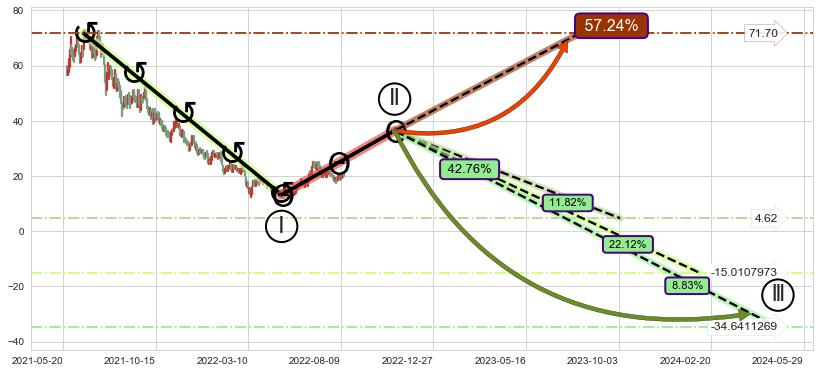 ➣ 大趋势循环浪继续向下概率42.76%