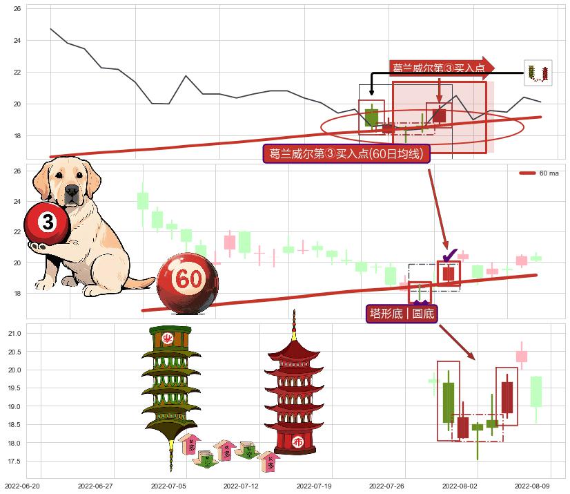 | 2 🅚:锤头线(锤子线) ➕ 🎢:葛兰威尔第③买入点买入点信号形成后,猜想后续持续拉升(趋势跟踪) ☞ 看多信号 ⇥ 【均线】交织【🅚线】⇥ 综合量化分数: 60 | > |