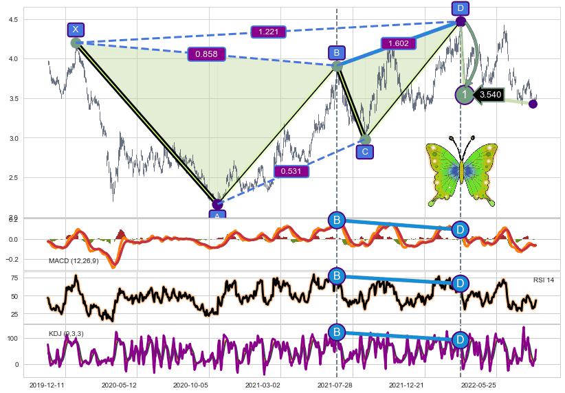 ➣ 已完成【蝴蝶】形态起点X: 2020-01-06, 终点D: 2022-03-07, 共536交易日
