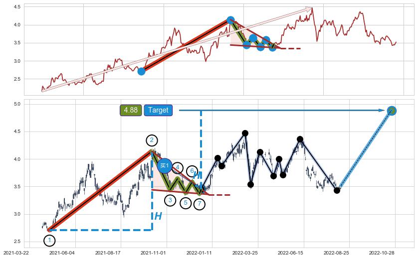 ➢ 最小中继整理涨幅→𝐇: 1.4300 (𝐇楔型旗杆的长度:楔型起点→顶点)