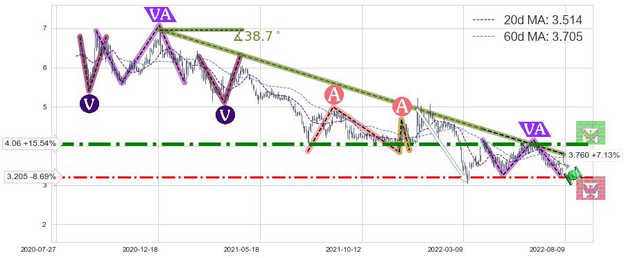 ♘ 阻力价格位4.06,可信任强度87.89%,距离最后交易2022-08-12形成的收盘价格3.510相差 +15.54%