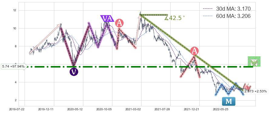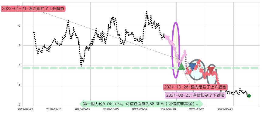 ♘ 阻力价格位5.74,可信任强度88.35%,距离最后交易2022-08-12形成的收盘价格2.900相差 +97.94%