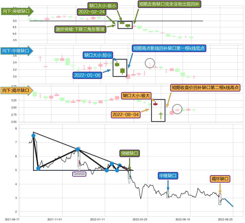 ➢ 2022-08-04形成:向下跳空【竭尽】缺口