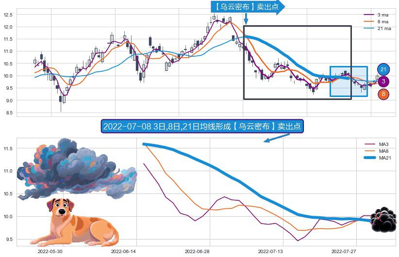 形态多维评估: ⚀ 2022-06-15日-2022-08-01日显现 3日-8日-21日均线 【乌云密布】卖出点 看空信号,后市看跌,卖出