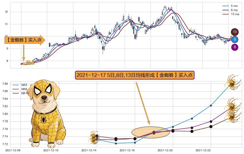 形态多维评估: ⚀ 2021-12-17日显现 5日-8日-13日均线 【金蜘蛛】买入点 看多信号,后市看涨,买入