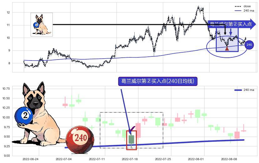 形态多维评估: ⚀ 2022-07-15-日显现 葛兰威尔均线 240日均线 第②买入点 上升趋势的中继信号,后市看涨,买进信号