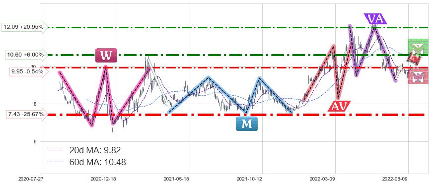 ♘ 支撑价格位9.95,可信任强度62.96%,距离最后交易2022-08-12形成的收盘价格10.00相差 -0.54%