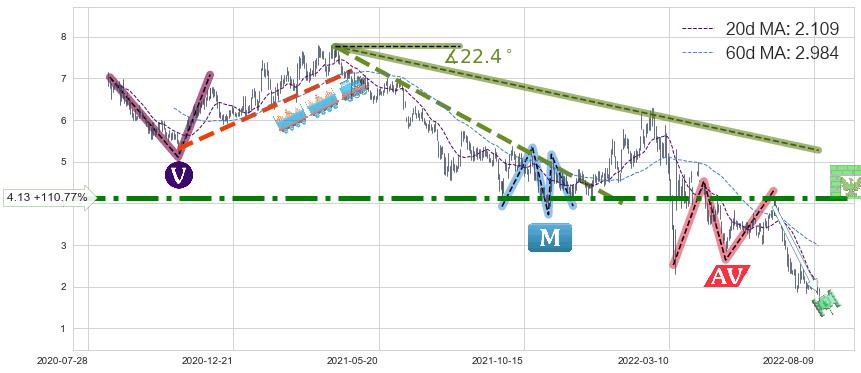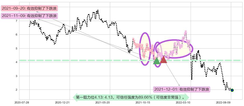 ♘ 阻力价格位4.13,可信任强度89.66%,距离最后交易2022-08-12形成的收盘价格1.9600相差 +110.77%