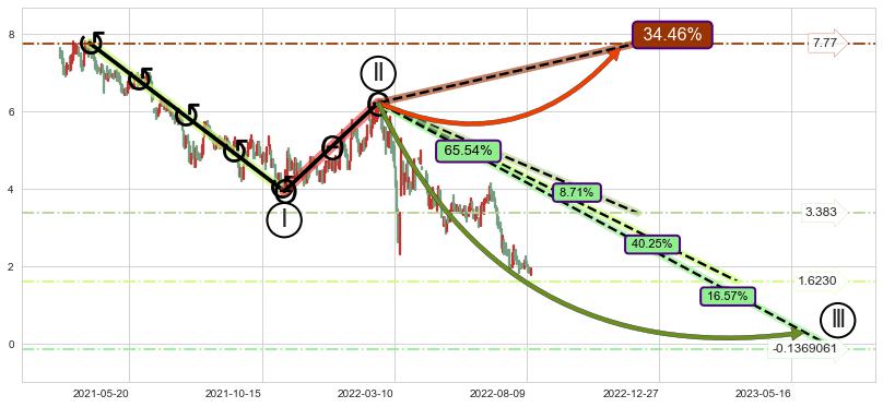 ➢ 循环浪继续向下【最高】位置(2022-12-05, 3.383),匹配聚类样本比例13.30%, 可能性概率8.71%